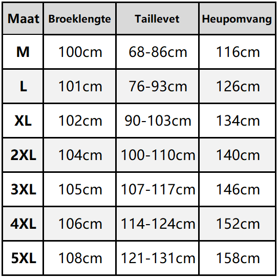 Maat: M, L, XL, 2XL, 3XL, 4XL